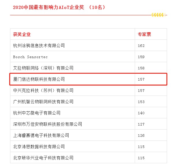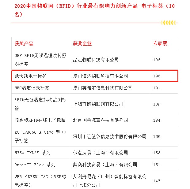 信達物聯(lián)歷經(jīng)大眾投票預(yù)熱、專家評委投票等環(huán)節(jié),摘奪“2020中國最具有影響力AIOT企業(yè)獎”和“2020年中國物聯(lián)網(wǎng)(RFID)行業(yè)最具有影響力創(chuàng)新產(chǎn)品獎”兩項桂冠。