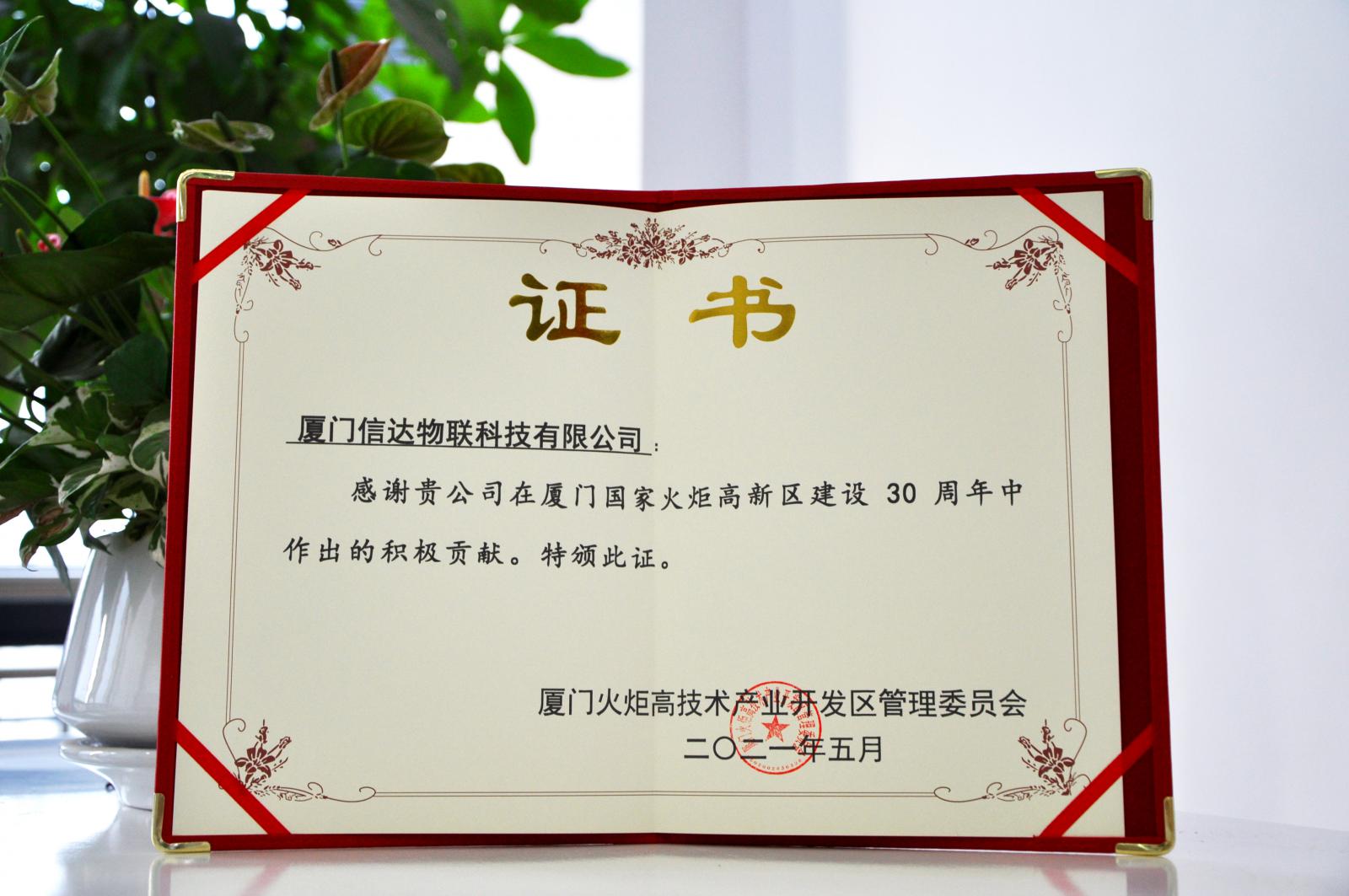 近日,廈門國家火炬高新區(qū)舉行建設(shè)30周年暨高質(zhì)量發(fā)展再動(dòng)員大會,表彰了為高新區(qū)建設(shè)30周年突出貢獻(xiàn)者,其中包括30家“突出貢獻(xiàn)企業(yè)”、30家“科技創(chuàng)新企業(yè)”、30名“突出貢獻(xiàn)個(gè)人”。廈門信達(dá)物聯(lián)科技有限公司(以下簡稱“信達(dá)物聯(lián)”)獲評“科技創(chuàng)新企業(yè)”榮譽(yù)。