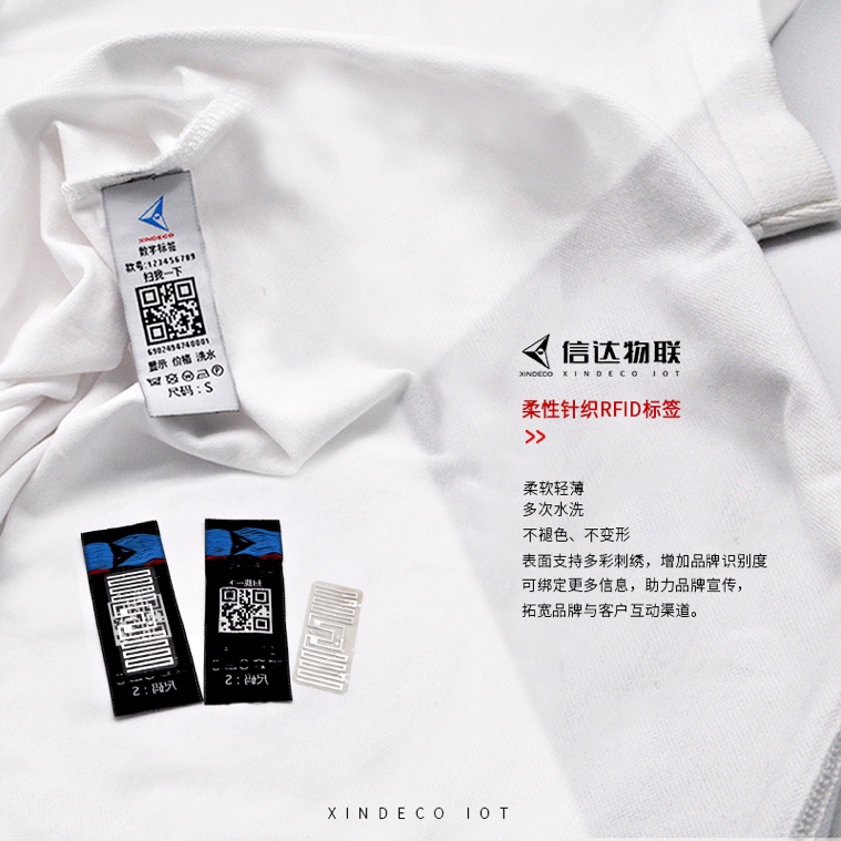 信達物聯(lián)二代柔性RFID標(biāo)簽,在追求輕薄、柔性的基礎(chǔ)上,實現(xiàn)了表面信息的多彩化及可變信息一一捆綁,多次水洗穩(wěn)定不變形、不褪色,助力客戶供應(yīng)端與消費端的管理及品牌宣傳。