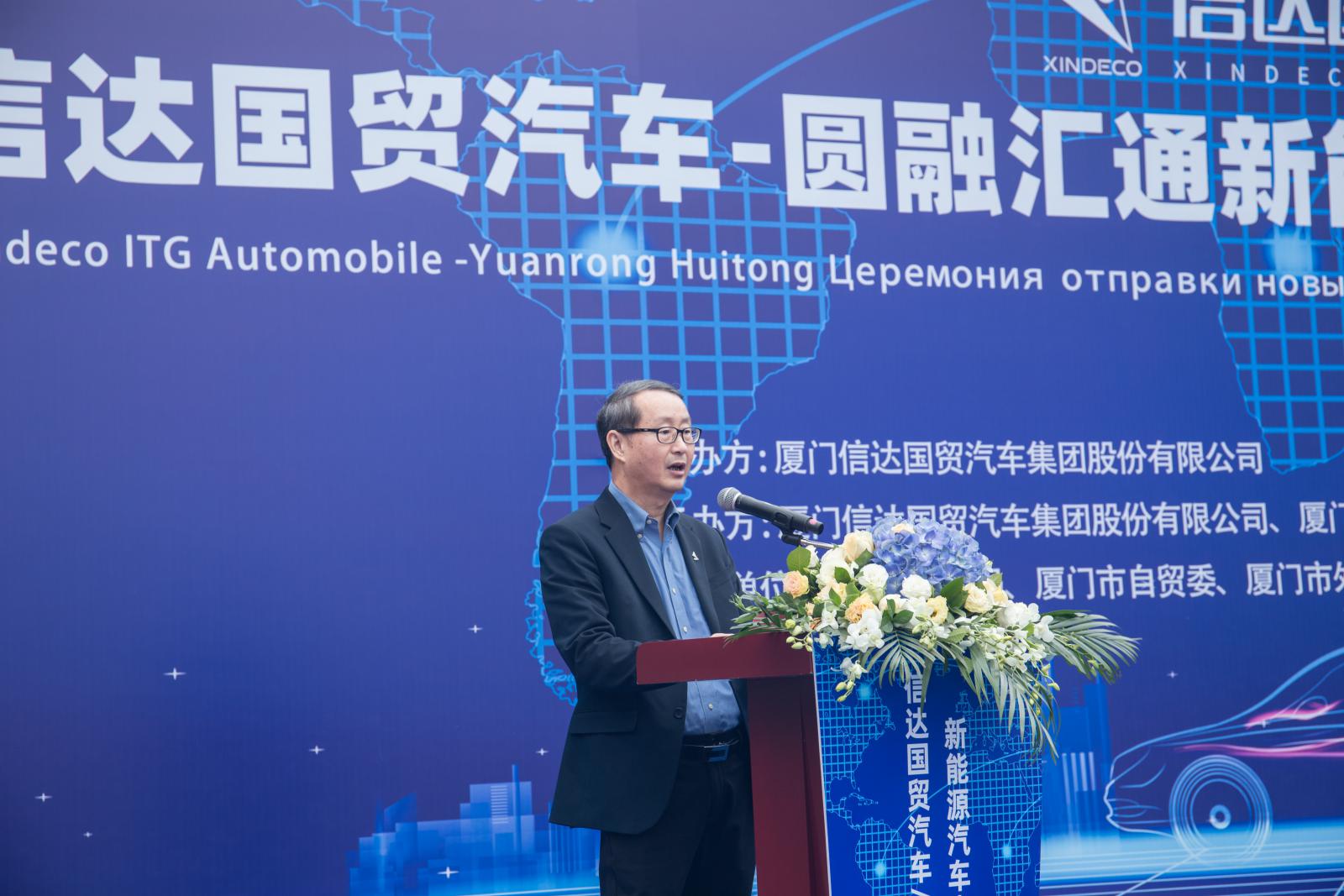 廈門市貿(mào)促會副會長黃安杰、市外辦副主任喻皓、湖里區(qū)副區(qū)長鄧小達(dá)、湖里街道黨工委書記林劍鋒、市商務(wù)局副處長王敏莉、自貿(mào)委投促中心副主任林天省、廈門信達(dá)黨委委員、副總經(jīng)理兼信達(dá)國貿(mào)汽車董事長黃俊鋒先生、信達(dá)國貿(mào)汽車總經(jīng)理陳秉躍先生、圓融匯通董事長陸其東先生參加發(fā)車儀式。