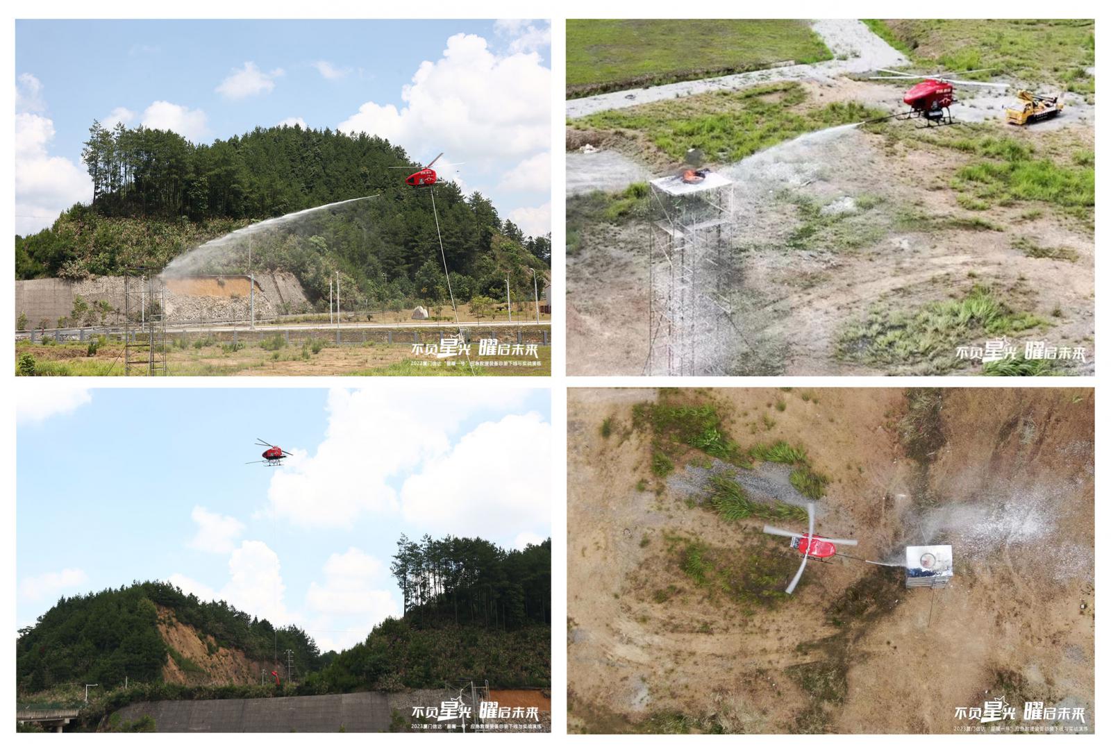 實(shí)戰(zhàn)演練現(xiàn)場(chǎng),廈門(mén)信達(dá)“星曜一號(hào)”通過(guò)飛控指揮艙與無(wú)人直升機(jī)的完美配合,呈現(xiàn)了一系列的裝備組合動(dòng)作,包括:飛行運(yùn)輸起降平臺(tái)一鍵展開(kāi)、無(wú)人機(jī)高空懸停、CAFS系統(tǒng)實(shí)戰(zhàn)滅火、系留水帶噴射、無(wú)人機(jī)起降平臺(tái)的起飛及降落、自主起飛及返航、空中應(yīng)急通信組網(wǎng)、空中照明及喊話、緊急吊運(yùn)救援等,充分展現(xiàn)了廈門(mén)信達(dá)“星曜一號(hào)”獨(dú)有的應(yīng)急救援優(yōu)勢(shì)。